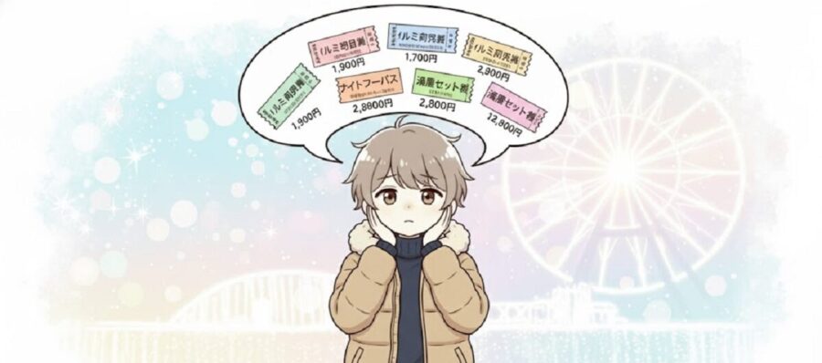 | 温泉セット券 | – | – | 【車利用者最強】 イルミ+温泉「うるり」利用付き。駐車場代が無料になる場合が多い! |