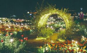 日本三大イルミネーションのひとつで、全国ランキングでも1位をとっているすごい場所です。広い園内には500万個以上のLEDが飾られていて、どこを見てもキラキラ輝いて、光で作られたバラや睡蓮、藤の花が咲き乱れる様子は、まるで夢の世界に迷い込んだような感動があります。