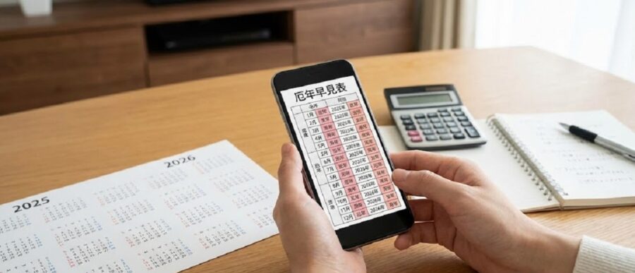 - 2025年・2026年の最新早見表で、自分が前厄・本厄・後厄のどれに該当するか一目でわかる
